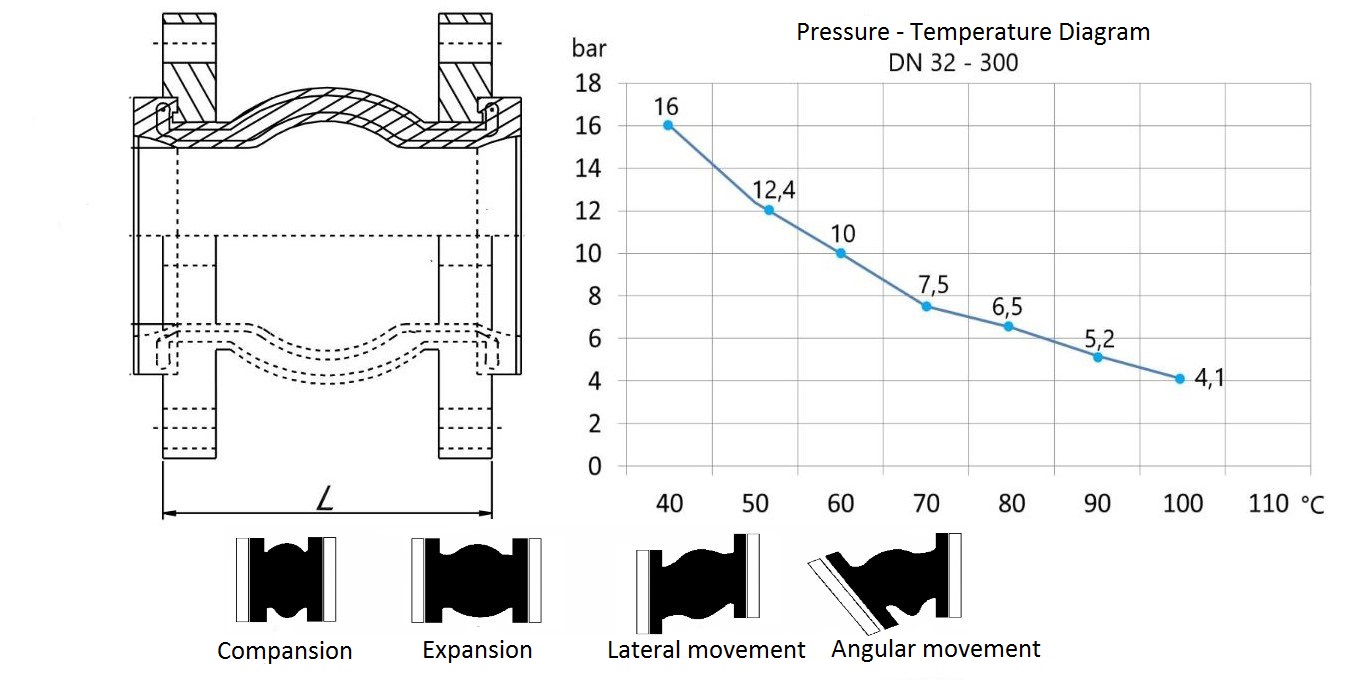 Hőmérséklet- és nyomástartomány: A kompenzátorok széles hőmérséklet- és nyomástartományban működnek, például -35°C-tól +130°C-ig, és akár 25 bar nyomásig is alkalmazhatók.