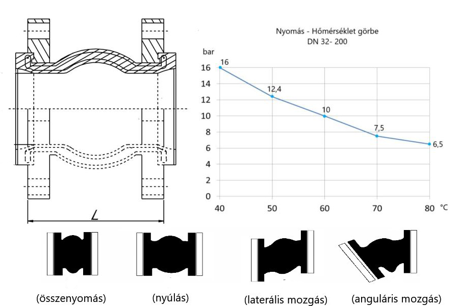 Hőmérséklet- és nyomástartomány: A kompenzátorok széles hőmérséklet- és nyomástartományban működnek, például -35°C-tól +130°C-ig, és akár 25 bar nyomásig is alkalmazhatók.